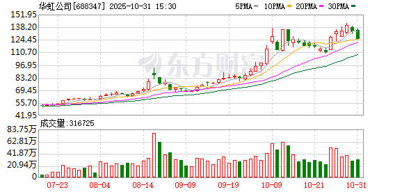 自第三季度以来,华虹公司股价持续拉涨,其间累计涨幅约1.28倍。
